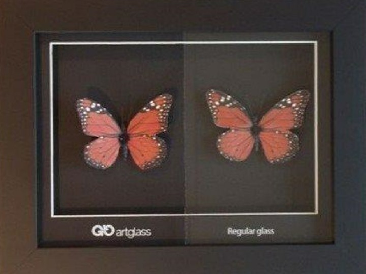 Als Rahmenvergolderin verarbeite ich vor allem entspiegeltes Weissglas. Es besteht aber auch die Auswahl von Normalglas, Acrylglas oder Spiegelglas.